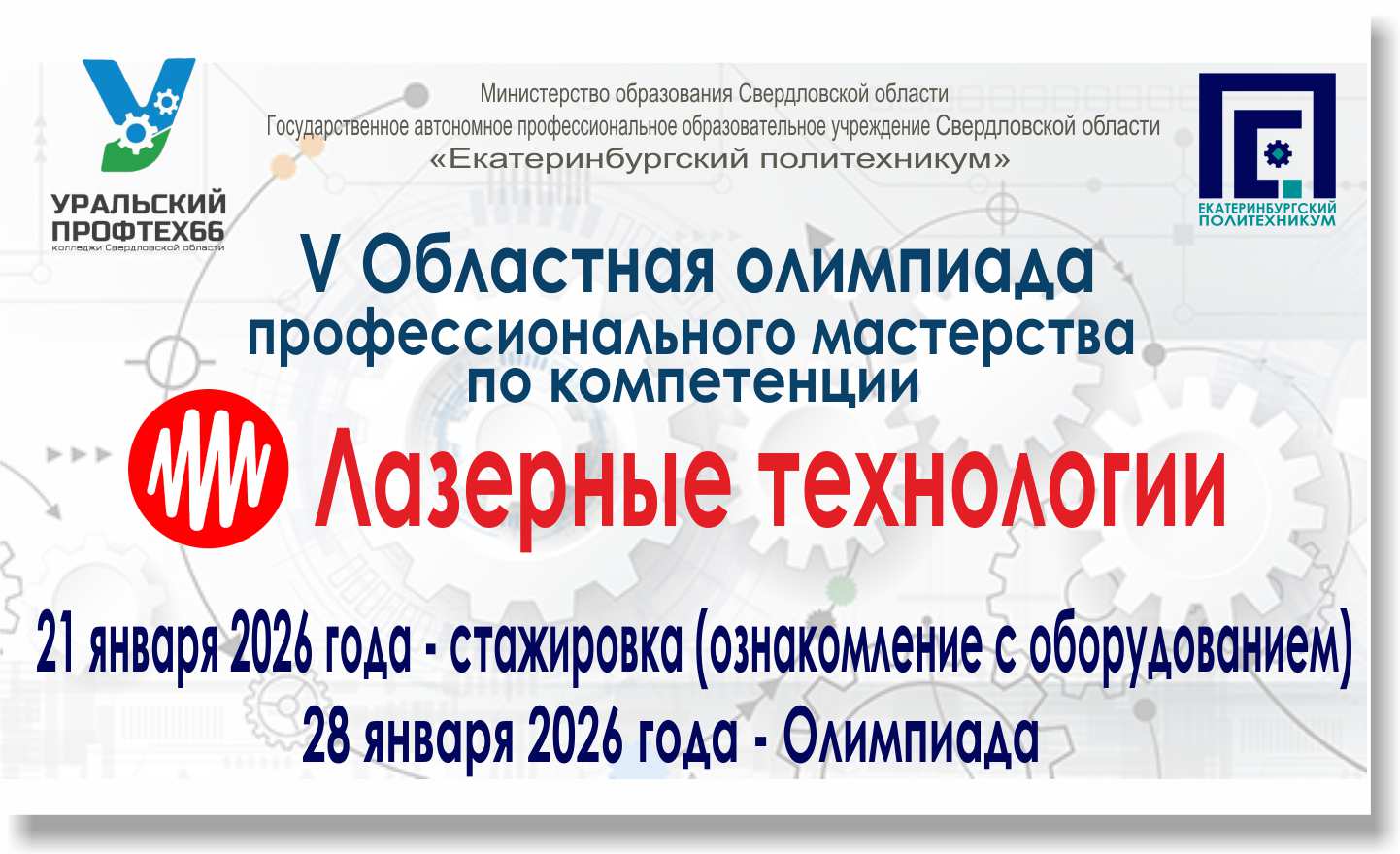 18 декабря 2019 года ГБПОУ СО «Екатеринбургский политехникум» проводит I областную олимпиаду профессионального мастерства по специальности «Лазерные технологии» среди обучающихся профессионально-образовательных организаций Свердловской области. |