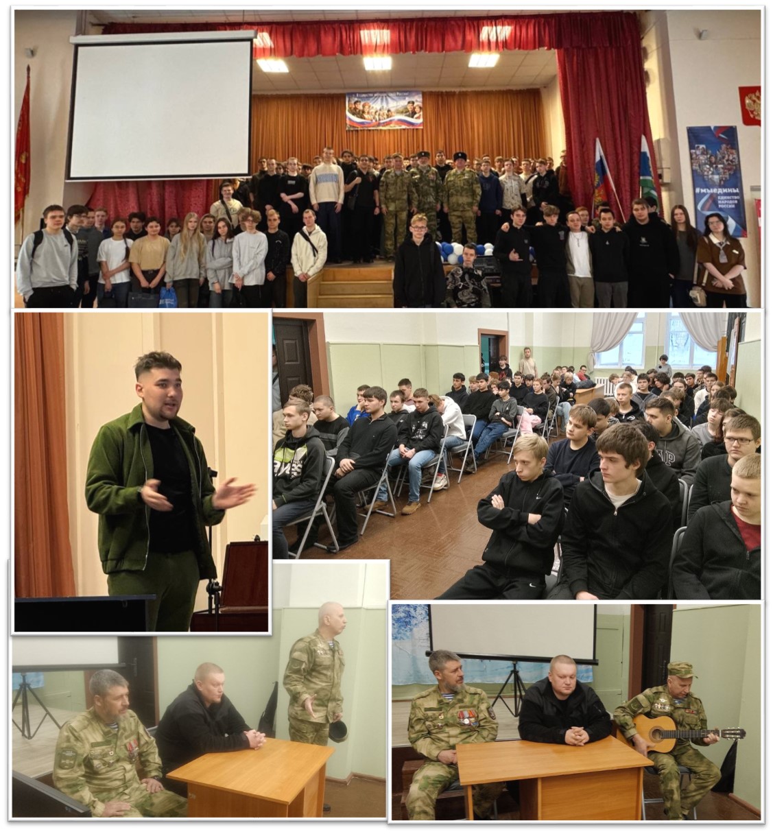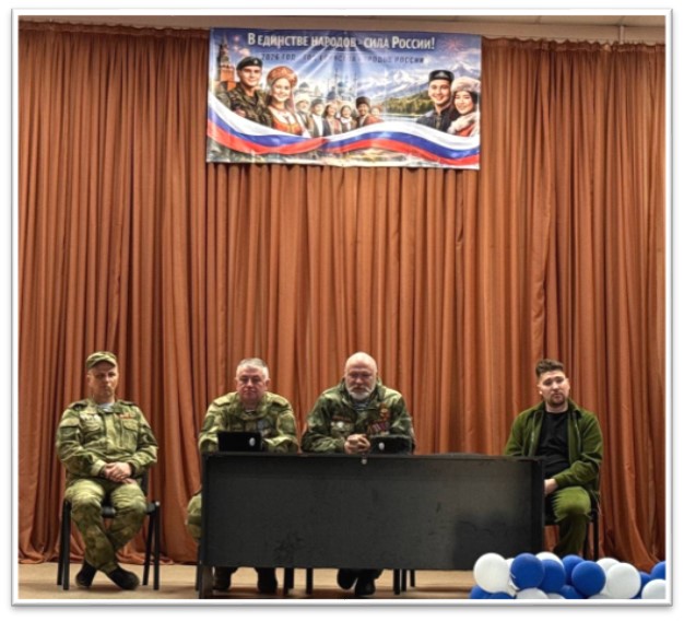 Студенты механического и политехнического отделений встретились с ветеранами СВО Андреем Неведровым, атаманом станицы Исеть-Дон, добровольцем Донбасса первой волны 2014 года, добровольцем Донбасса Александром Бондаренко, военным разведчиком СВО Ильей Семерековым. На встрече ветераны рассказали об истории Новороссии, Русской Весны, о ситуации на фронтах, о подвиге наших воинов, ответили на вопросы ребят. |