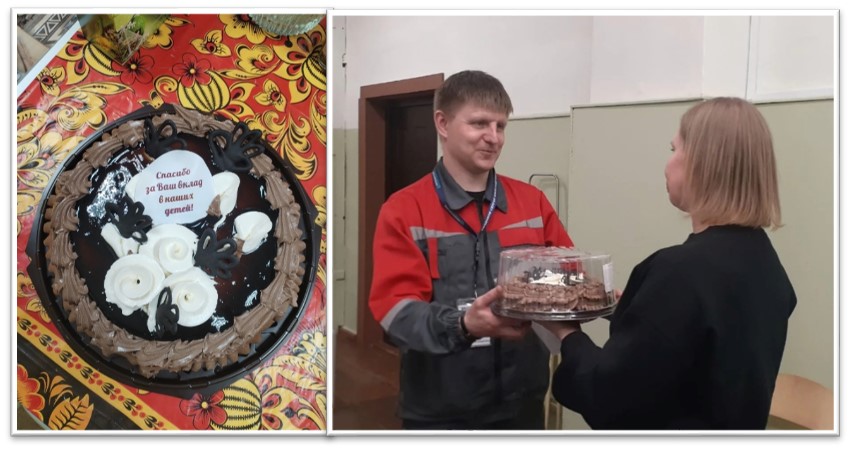 По поручению родительского комитета класса, мама Романова Эдуарда Ирина Александровна вручила торт и поблагодарила за подготовку ребят и появление у них интереса к техническим профессиям.