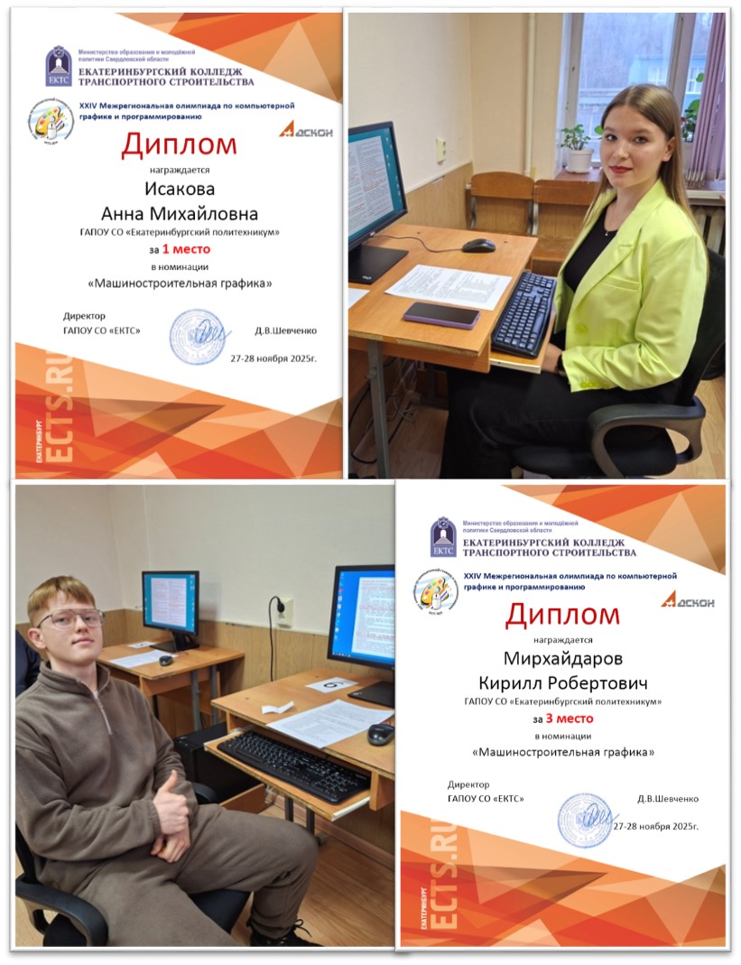 Наши ребята справились на ОТЛИЧНО!!! Победителем Олимпиады стала Исакова Анна студентка группы 242ТМ24 и призером (третье место) Мирхайдаров Кирилл студент группы 312ТМ23.